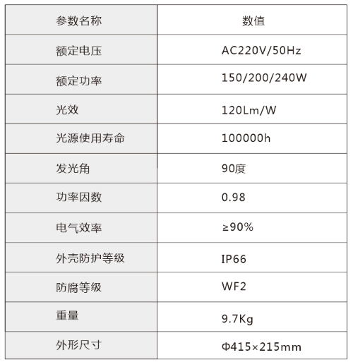 ■ 燈體的防護(hù)等級為IP66,防腐等級可達(dá)到WF2,燈體表面永不腐蝕,永不生銹。
